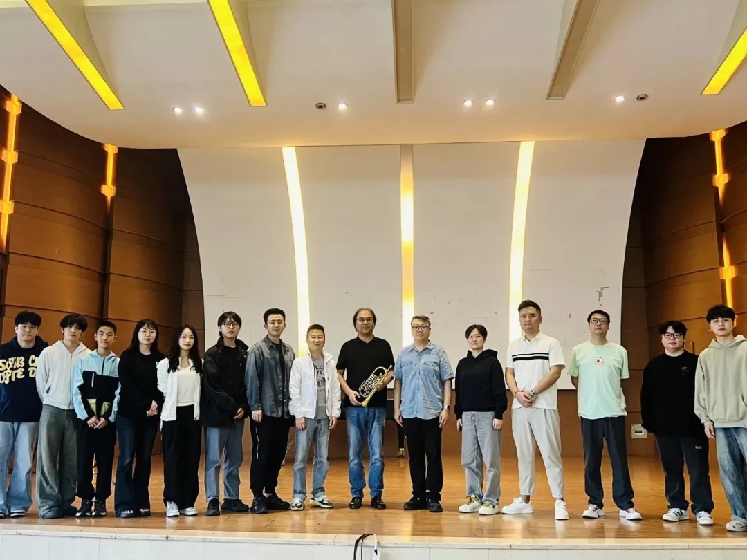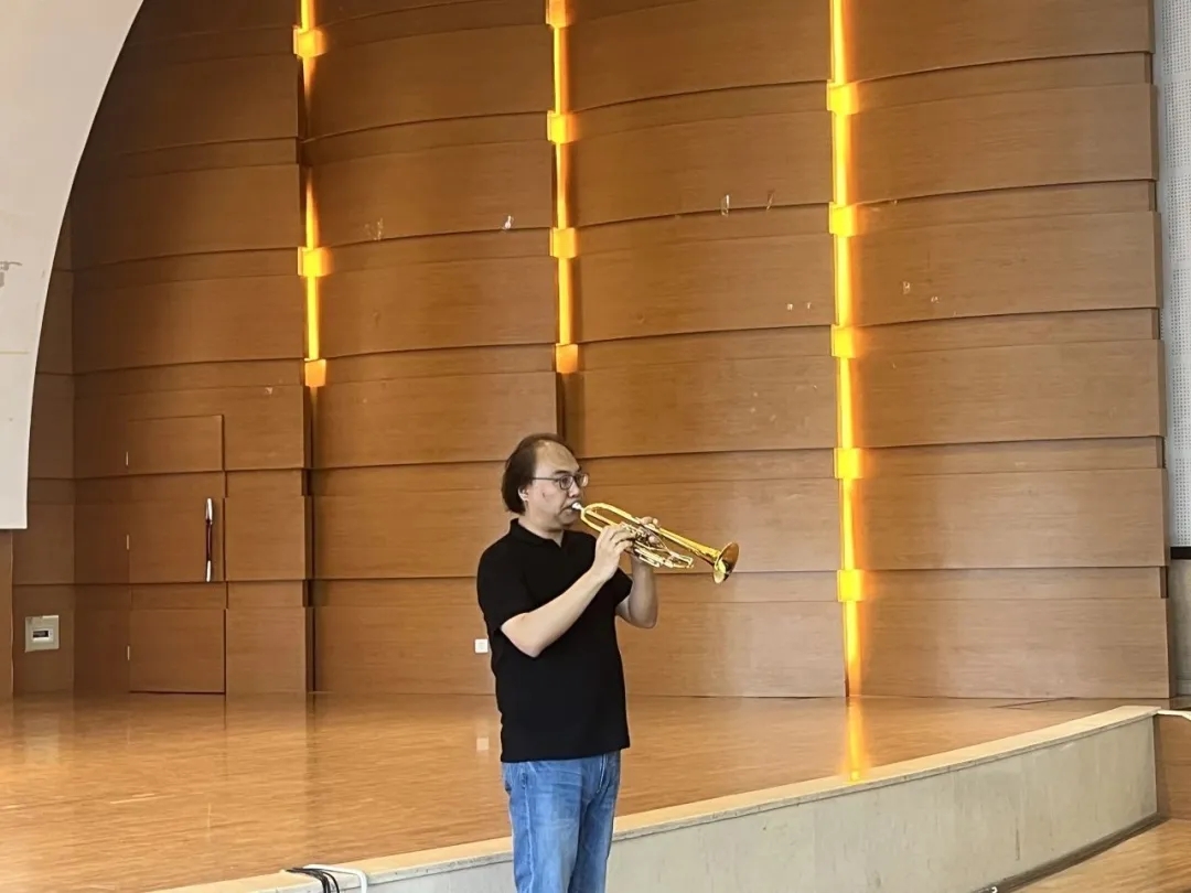 2025年4月24日下午2:00,由重庆师范大学音乐学院和重庆市管乐协会小号专委会共同主办的陈光教授小号专家课,在重庆师范大学音乐学院排练厅举行。陈光教授以生动幽默的语言,深入浅出地讲解了小号演奏的技巧,并进行示范演奏。