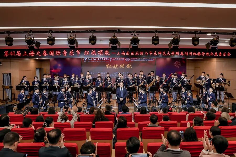 第41届上海之春国际音乐节的艺术春风拂进菁菁校园。3月30日,一场别开生面的“红旗颂歌”公益交响音乐会在华东师范大学附属闵行虹桥学校成功上演。此次活动以专业乐团与校园学生乐团同台为主要特色,不仅呈现了一场高水准的音乐会,更搭建了一个生动的艺术实践与美育平台。