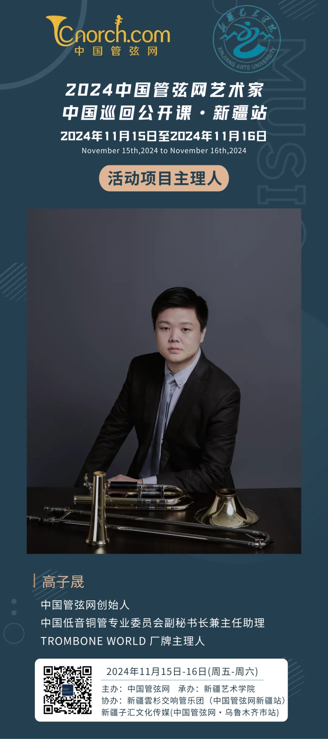 2024年11月14日至2024年11月16日,中国管弦网艺术家中国巡回公开课将在新疆首次举办。