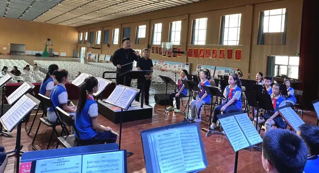 2023年9月15日上午,中央音乐学院肖凯文老师莅临万象新天学校交流指导交响管乐团。他指出音乐对开发大脑有好处,非常高兴孩子们能学习音乐。他认为学习器乐,既要注意音准,也要注意和其他人的合作,还要看指挥,注意用耳朵来听。