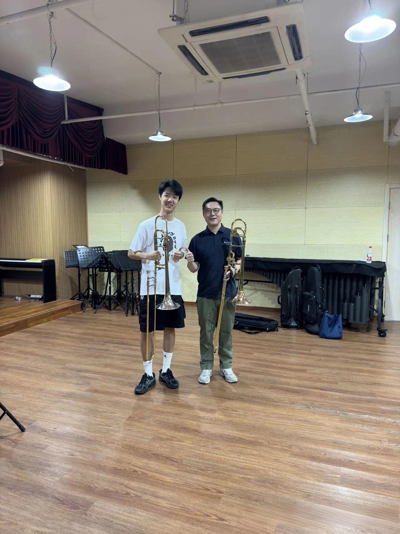 2025年8月7日-8月8日,“辉煌十年·号韵十年”青岛长号乐团十周年音乐会系列活动--姜贝老师长号大师课成功举行。 为期两天的大师课内容充实,形式多样。姜贝老师的讲解深入浅出,示范精准生动,其幽默风趣的语言与严谨的教学态度相得益彰,为多位上台学员进行了细致入微的现场指导。