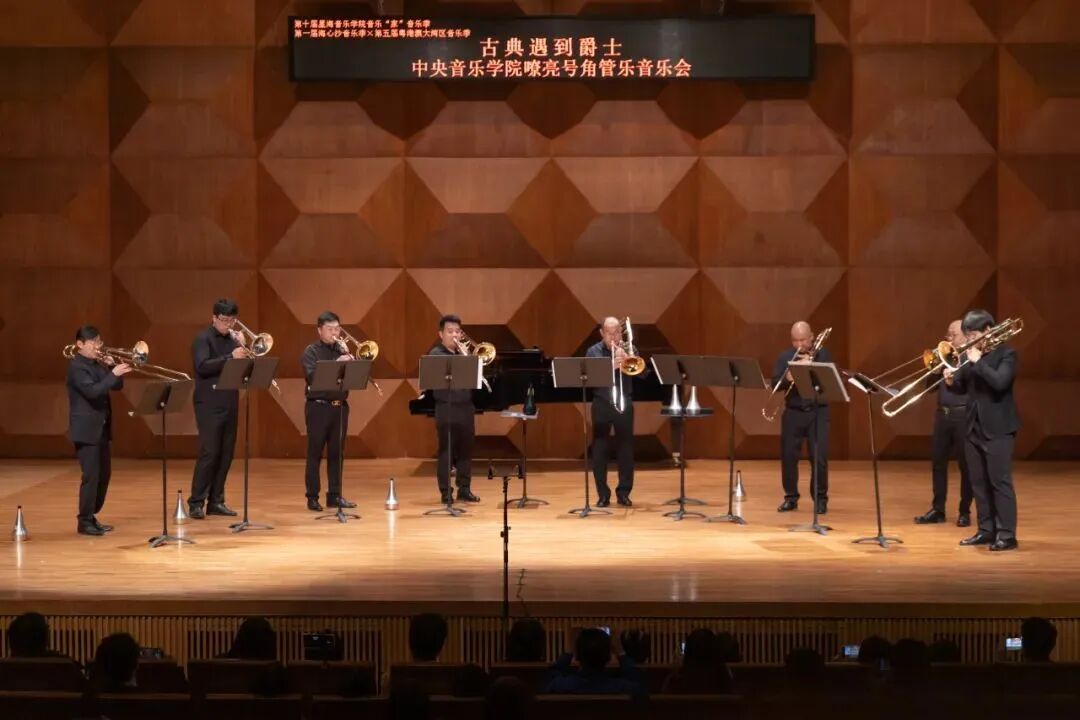 2024年12月12日晚,《嘹亮号角》北京—广州 古典—爵士音乐会在星海音乐学院郎朗音乐厅成功举办。 王匡一老师与刘洋老师、郭玎泰老师、刘爽老师、雷震老师、汤有富老师、闫瑜老师、王子恩同学共同带来由戴斯坦奎改编的《西部往事》。