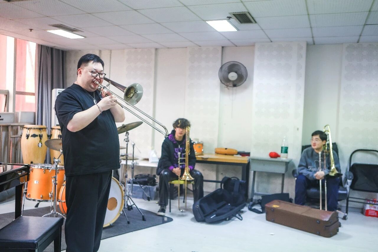 2025年12月12日上午10:00,爵士长号教师曹侃为四川音乐学院爵士铜管专业学生举办大师课, 针对学生不同阶段,从音色训练、演奏技巧到即兴思维提供了实用建议。