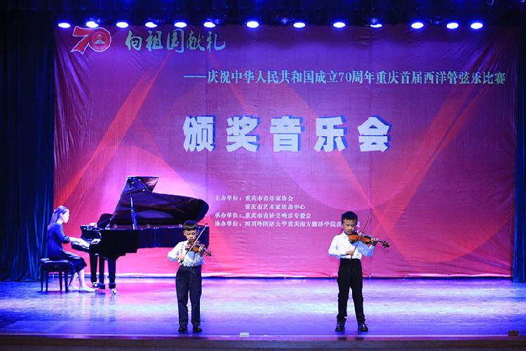 “向祖国献礼”2019年重庆首届西洋管弦乐独奏、重奏比赛8月23日晚在市文联剧场举行颁奖晚会。比赛组委会负责人、市音协交响乐专委会副会长张颖介绍,这是迄今为止重庆规模最大、影响最广的一次专业管弦乐赛事,“希望通过独奏到重奏的呈现,展示重庆西洋管弦乐良好的发展态势,推动音乐教育更好发展。”