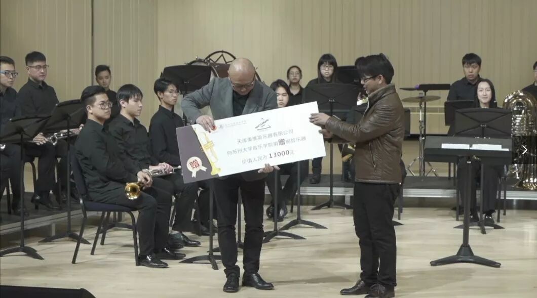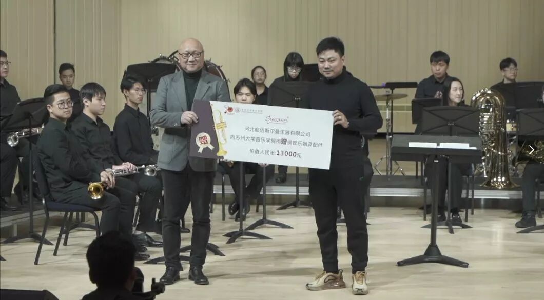 在本次开幕式中,还有一项比较“特别”的活动,那就是乐器的捐赠仪式。为了教学、科研的发展,天津奥维斯乐器有限公司和河北廊坊斯尔曼乐器有限公司分别向苏州大学音乐学院捐赠了铜管乐器及配件。