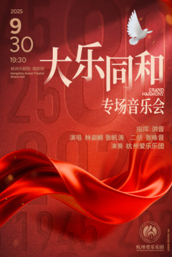 2025年9月30日晚,杭州爱乐乐团将在杭州大剧院·歌剧院隆重上演“大乐同和”专场音乐会。驻团指挥洪音执棒,携手女高音歌唱家林姿娴、男高音歌唱家张帆涛以及二胡演奏家张咏音,以交响乐为祖国76周年华诞献上最深情的礼赞。