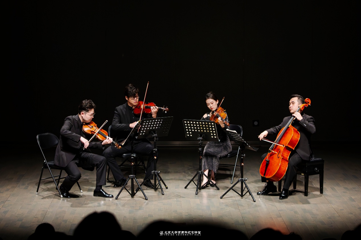 2025年11月9日晚,北京大学百周年纪念讲堂李莹厅,中国交响乐团“默”弦乐四重奏以一场题为“光影与棱镜”的音乐会,为静谧的燕园增添了浓厚的古典雅韵。这场音乐会是中国交响乐团与北大百周年纪念讲堂联合打造的“跨‘乐’时空”室内乐系列的重要组成部分。