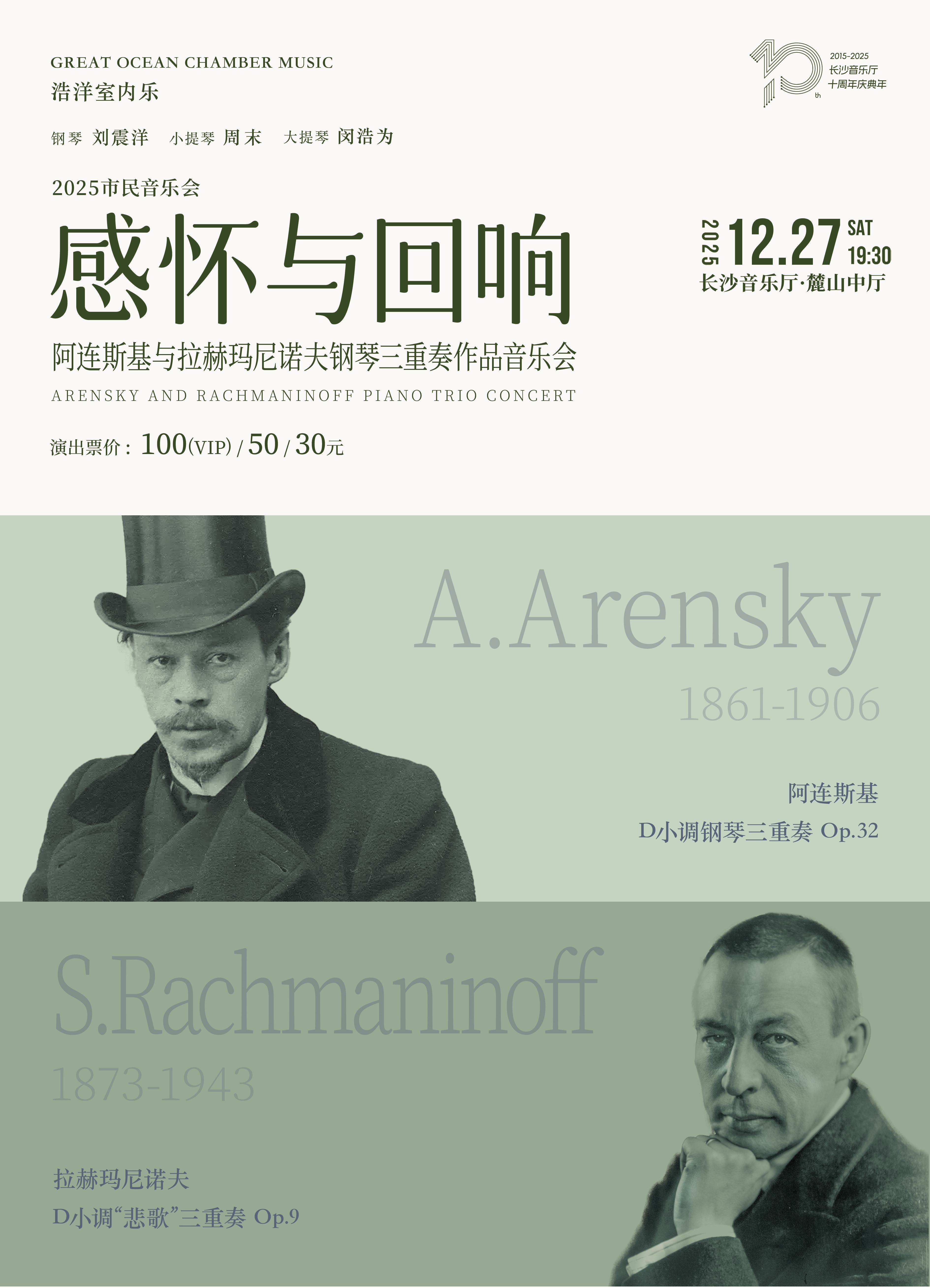阿连斯基与拉赫玛尼诺夫钢琴三重奏作品音乐会即将上演